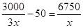 8. 我市把提升城市园林绿化水平作为推进城市更新行动的有效抓手,从2023年开始通过拆违建绿、见缝插绿等方式在全域打造多个小而美的“口袋公园”.现需要购买A、B两种绿植,已知A种绿植单价是B种绿植单价的3倍,用6750元购买的A种绿植比用3000元购买的B种绿植少50株.设B种绿植单价是x元,则可列方程是( )