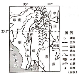 缅甸是东南亚重要的柚木生产和出口国,其柚木出口到中国选择公路运输,公路主要为盘山公路。图3为“缅甸及周边地区略图”。据此完成8~10题。