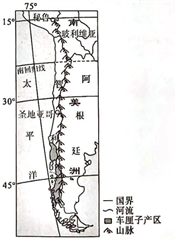 (1)(6分)位于南半球、西半球;跨热带和南温带;南美洲西部,西临太平洋;北临秘鲁,东临玻利维亚和阿根廷。