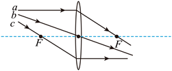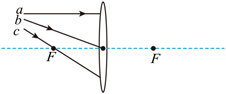21. 如图,F是凸透镜的焦点,a、b、c是三条入射光线,请画出这三条光线经凸透镜后的出射光线。