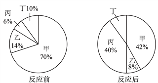 15. 密闭容器内有甲、乙、丙、丁四种物质,在一定条件下充分反应,测得反应前后各物质的质量分数如图所示。下列说法错误的是