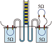 24. 如图是“探究通电导体产生的热量与__________大小关系”的实验装置。通过左侧容器中电阻丝的电流为0.4A,在1min内电流通过右侧容器中电阻丝产生的热量为___________J。