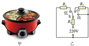 34. 一款小型电火锅如图甲所示,通过挡位开关实现高、中、低三挡控温功能;图乙是它的简化电路图,