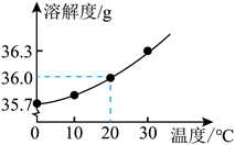 (2)用化学知识能很好地解释古人的制盐工艺。图为氯化钠的溶解度曲线,20℃时氯化钠的溶解度为______g。此温度下,将9g氯化钠溶解到25g水中,可配得氯化钠的_______(填“饱和”或“不饱和”)溶液;保持温度不变,蒸发部分溶剂,该溶液溶质的质量分数_______(填“变大”“不变”或“变小”)。