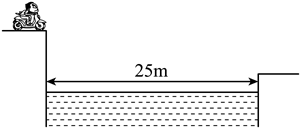 的河流落在河对岸平台上,已知河流宽度25m,不计空气阻力,取