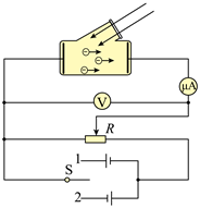 的光照射光电管,调节滑动变阻器,使电流表的示数刚好为0,此时电压表的示数为