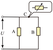 17. 虚接是常见的电路故障,如图所示,电热器A与电热器B并联。电路中的C处由于某种原因形成了虚接,造成了该处接触电阻0~240Ω之间不稳定变化,可等效为电阻