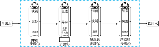 (1)步骤①中PP棉可以除去水中的泥沙等大颗粒杂质,与实验室常用的______操作相同;步骤②中用______吸附色素和异味。
