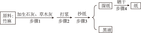 【查阅资料】我国古代手工造纸以麻、木材、竹等为原料,经过如下图多道工序而制成。