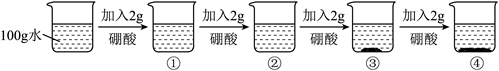资料:20℃时,硼酸的溶解度为5.0g;40℃时,硼酸的溶解度为8.7g。