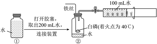 A. ②中瓶内空气的体积约为200mL B. 可加热铁丝引燃铜匙中的白磷
