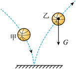 12. 如图,某同学将篮球掷向地面,经过甲位置后碰到地面,接着向上反弹经过乙位置,忽略空气的作用力。