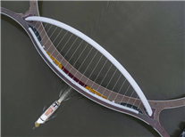 2021年6月,广州海心桥落成。海心桥由国内团队设计并负责施工,为世界同类型桥梁中跨度最大、宽度最宽的过江人行桥。大桥修建采用了一系列新技术、新材料,克服了抗风抗震等诸多难题。海心桥造型概念源于“琴鸣绢舞·岭南花舟”,吸取了粤曲水袖等岭南文化元素。
