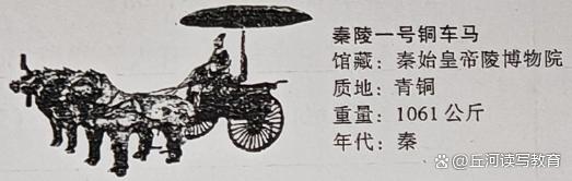 10.C 秦陵一号铜车马车舆、驷马,配饰一应俱全,是用青铜铸造的,外观逼真的仿马四 车体形状的模型,有真车马一半大小。