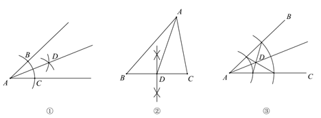 6. 在如图的三个图形中,根据尺规作图的痕迹,能判断射线