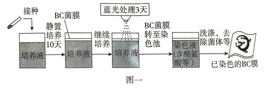 (4)由小问2分析可知,细胞中T7RNAP激活,酪氨酸酶表达并合成黑色素,故用蓝光照射已长出的BC菌膜并继续培养一段时间,随后将其转至染色池处理,发现只有经蓝光照射的区域被染成黑色。