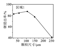 一定条件下,颗粒尺寸与锂浸出率关系如图。区域Ⅰ中,锂浸出率随颗粒尺寸减小而降低的原因是 。