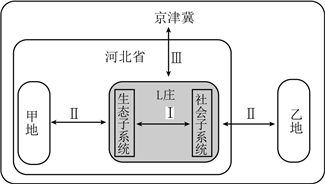 L庄地处冀西北,属半干旱气候,资源环境承载力低,为缓解人地矛盾,逐步形成了以水定畜的农业生产传统。近年来,L庄招商引资,组建种植合作社,绿化荒山,助力京津冀绿色屏障建设。下图示意L庄的人地关系,既包括L庄内部人地关系(Ⅰ),也包括L庄与外界的人地关系(Ⅱ和Ⅲ)。据此完成下面小题。