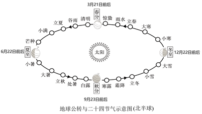 二十四节气是中华民族的优秀传统文化,相邻节气间隔约15天。结合下图,完成下面小题。