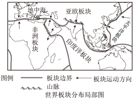 C. 非洲板块与印度洋板块产生张裂运动 D. 亚欧板块与印度洋板块产生张裂运动