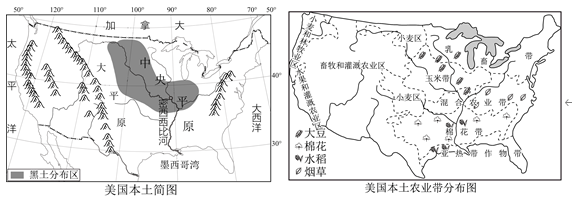 (1)依据美国本土简图中的信息,说明美国发展农业的有利条件。____