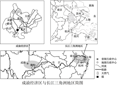 (3)依据下列要求,对比成渝经济区与长江三角洲地区,分析相应的优势。