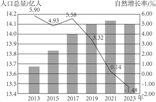 读我国近十年人口数据统计图,完成下面小题。