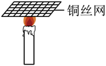 13. 为进一步探究燃烧条件和灭火原理,小明同学将铜丝网放置在蜡烛火焰中上部,发现铜丝网下方蜡烛正常燃烧,上方没有火焰,如图所示。请分析铜丝网上方没有火焰的原因是