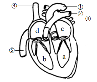 11. 解剖、观察羊的心脏后,兴趣小组绘制了心脏解剖示意图,字母和数字分别表示腔室和血管。你对他们的解读不认同的是( )