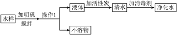 15. 实验室中对某河水的水样进行净化处理,设计流程如图所示。