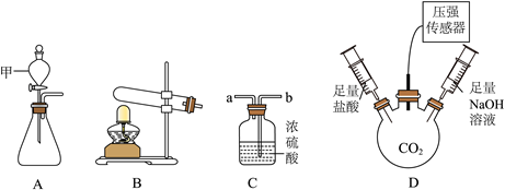 (4)在三颈烧瓶D中用排空气法收集CO2气体,检验气密性后,在t1时快速注入一种溶液,t3时快速注入另一种溶液,测得瓶内压强随时间变化曲线如图所示。下列说法正确的是___________。