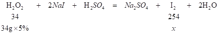 (2)实验中共消耗稀释后的过氧化氢溶液34g,最终可制得碘单质多少克?