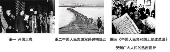 27. 在中国共产党的领导下,新民主主义革命取得胜利。中华人民共和国以无可辩驳的事实向全世界宣示,她不仅完全有能力捍卫国家独立,而且以令人难以置信的速度完成了向社会主义的过渡。阅读材料,回答问题。