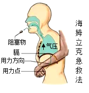 (2)吃饭时,小明又说又笑,结果一粒花生米卡到了气管,导致呼吸困难。爸爸立刻按照图示方式环抱小明,两手紧扣在其肚脐上方,双臂快速用力向后上方挤压,此时,爸爸肱二头肌的状态是___________,小明体内膈顶部________(填”上升“或”下降“), 胸腔迅速________(填“扩大”或“缩小”)使肺内气压激增,产生有冲击力的气流将花生米排出。食物会误入气管,是因为消化道和呼吸道共有的结构是__________。