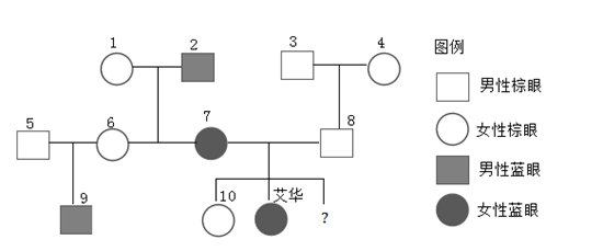 (3)假定控制虹膜颜色的显、隐性基因分别用D、d 表示,则艾华的姐姐10号的基因组成是______,决定其虹膜颜色为棕色的基因来自_________(填“7”或“8”)号,是通过________传递给她的。