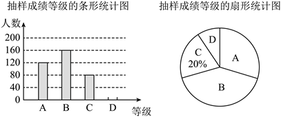 18. 我国古诗词源远流长.某校以“赏诗词之美、寻文化之根、铸民族之魂”为主题,组织学生开展了古诗词知识竞赛活动.为了解学生对古诗词的掌握情况,该校随机抽取了部分学生的竞赛成绩,将成绩分为A,B,C,D四个等级,并绘制成如图所示的两幅不完整的统计图: