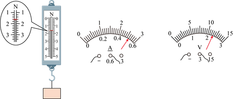 11. 如图所示,物块处于静止状态,则物块重力为_______ N,电流表读数为_______A,电压表读数为_______V。