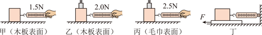 (1)如图甲、乙、丙所示三种情况下,木板和毛巾保持不动,物块在弹簧测力计拉力作用下均做匀速直线运动。则物块所受滑动摩擦力的大小_______(填“大于”“等于”或“小于”)弹簧测力计的示数;