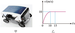 20. 如图甲是某新型太阳能汽车,该汽车的动力完全由安装在车顶的电池板收集的太阳能提供。接收太阳能的电池板面积为