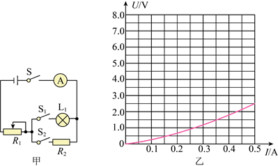 ,滑动变阻器滑片移到中点时,小灯泡正常发光。图乙为小灯泡两端电压与电流的关系图像。