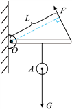 16. 如图所示,杠杆处于平衡状态,画出球A所受重力的示意图(重心在球心处)和力F的力臂L。