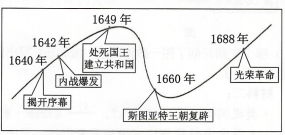 (2)请用一个词形容图二革命的历程。(1分)该国是如何解决王权专制问题的?(2分)