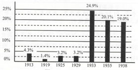 (3)经济大危机导致失业率激增,为此美国政府推行“以工代赈”解决就业问题;美国政府推行“以工代赈”,投资兴建公共设施,为失业者提供就业机会,失业率下降等。(符合题意一点即可,2分)