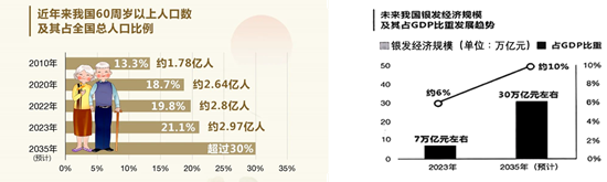 【答案】(1)①近年来我国60周岁以上人口数量不断增加,其占全国总人口的比例也在持续上升,这表明我国人口老龄化程度不断加深。②未来我国银发经济规模将不断扩大,其占GDP的比重也呈上升趋势,这反映出银发经济在我国经济发展中的地位和作用将日益重要。