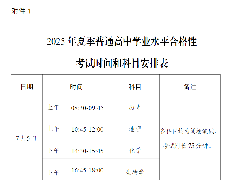 宁夏2025年夏季普通高中学业水平合格性考试时间安排表