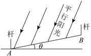 11.小申同学观察发现,生活中有些时候影子可以完全投射在斜面上.某斜面上有两根长为1米的垂直于水平面放置的杆子,与斜面的接触点分别为A、B,它们在阳光的照射下呈现出影子,阳光可视为平行光:其中一根杆子的影子在水平面上,长度为0.4米;另一根杆子的影子完全在斜面上,长度为0.45米.则斜面的底角