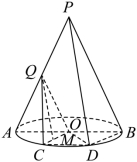 (2)已知Q是母线PA的中点,点C、D在底面圆周上,且弧AC的长为