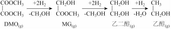 制备的DMO合成乙二醇,发生如下3个均放热的连续反应,其中MG生成乙二醇的反应为可逆反应。