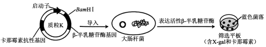 15. 质粒K中含有β-半乳糖苷酶基因,将该质粒导入大肠杆菌细胞后,其编码的酶可分解X-gal,产生蓝色物质,进而形成蓝色菌落,如图所示。科研小组以该质粒作为载体,采用基因工程技术实现人源干扰素基因在大肠杆菌中的高效表达。下列叙述错误的是( )