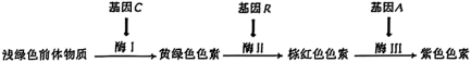 (1)研究发现,水稻颖壳的紫色、棕红色、黄绿色和浅绿色的形成与类黄酮化合物的代谢有关。假设显性基因C、R、A控制颖壳色素的形成,且独立遗传,相应的隐性等位基因不具有该效应。色素合成代谢途径如图。